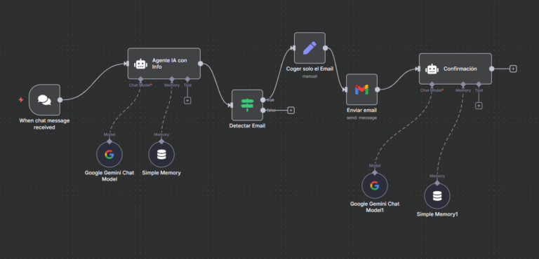 INDI es un asistente creado en n8n que utiliza Google Gemini como motor de inteligencia artificial conversacional. Su objetivo es atender a los usuarios en la web con un tono cercano, profesional y humano.